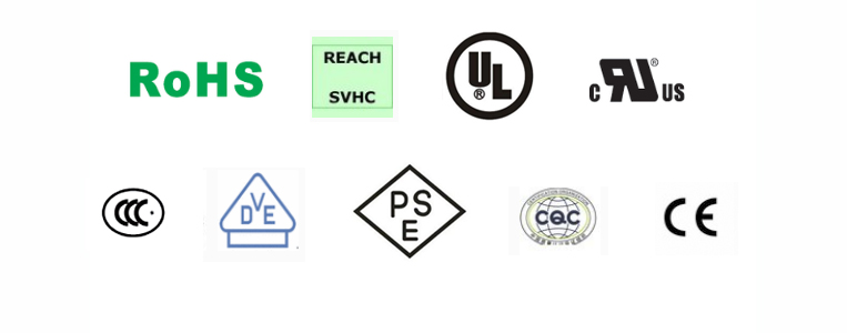 穩定可靠的產品品質是我們得以維持在業界信譽及持續發展的重要因素之一,我們產品均依國際安全標準要求用心設計制造,符合歐州RoHS 和 Reach環保標準,并通過國家及認證機構測試和認證,歷年來共獲得了以下列各項國際安規認證: