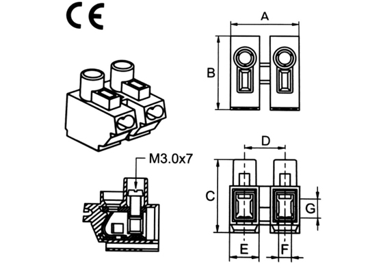 Terminal | Cross-Sec. | AWG,Cu | A | B | C | D | E | F | G | ||||