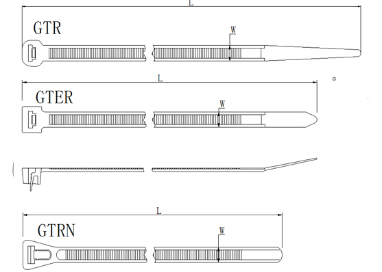 Part No.型號 1000PCS/bag | Length 長度 mm(inch) | Width 寬度 mm(inch) | Max.Bundle Dia 最大束徑 mm(inch) | Min.loop Tensile Strength 拉力 kg(lbs) | 圖紙下載 Download |