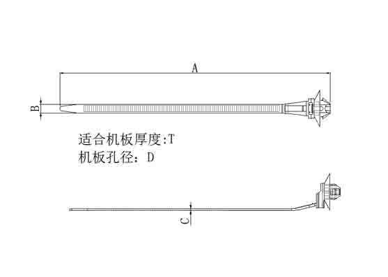 Part No. 型號 | Sketch Map 示意圖 | Length 長度 mm | Width 寬度 mm | Hole Dla 孔徑 mm | Panel Thickness 機板厚度 mm | Max.Bundle Dia 最大束徑 mm | Min.loop Tensile Strength 拉力 kg(lbs) | Download 圖紙下載 |