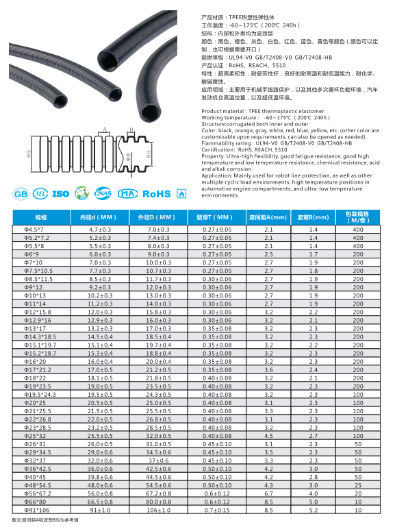 TPEE耐高溫175℃耐疲勞波紋管_波紋管系列