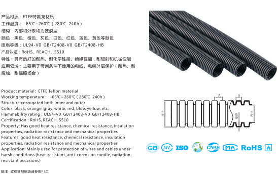 • 產品名稱: ETFE耐高溫260℃波紋管
