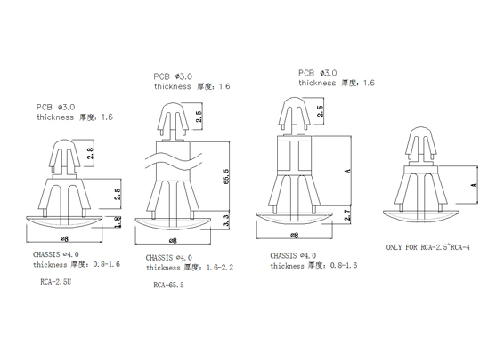 用途:一端固定機板上,另一端支撐PC板,避免下陷造成短路,PC板免鉆孔。