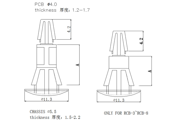 用途:一端固定機板上,另一端支撐PC板,避免下陷造成短路,PC板免鉆孔。