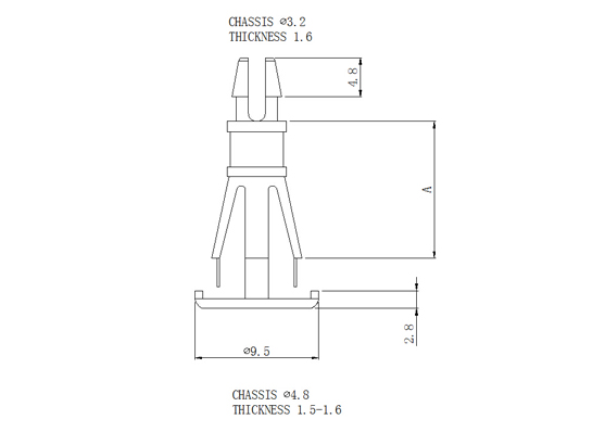 用途:一端固定機板上,另一端支撐PC板,避免下陷造成短路,PC板免鉆孔。